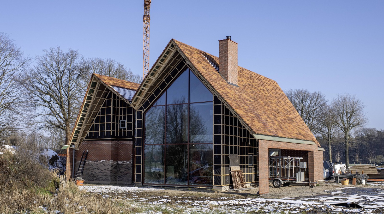 Deze woning in Rossum heeft een bijzonder ontwerp én heel bijzondere dakpannen. Ze zijn handgemaakt in Denemarken en ze zijn speciaal voor deze bouw ontworpen. Tom Lucassen van producent Petersen Tegl is bijzonder blij met het resultaat. “Aan zulke projecten werken wij héél graag mee. Het is prachtig geworden.”