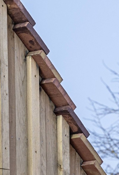 “Het is de eerste keer dat deze kleurstelling is gemaakt. Het betreft een rood-genuanceerde kleurstelling waarvoor rode klei is gebruikt met daarin verwerkt een geelbakkende, gesmolten klei,” legt Tom Lucassen van Petersen Tegl uit. “Inspiratie voor de architect was ‘het Twentse dak’. Twente kent veel oorspronkelijk rode daken die zijn begroeid met mos of op een andere manier donkerder gekleurd. Die mengeling van kleuren wilde de architect terugzien in dit ontwerp. En wij vinden het geweldig om zoiets te maken.”